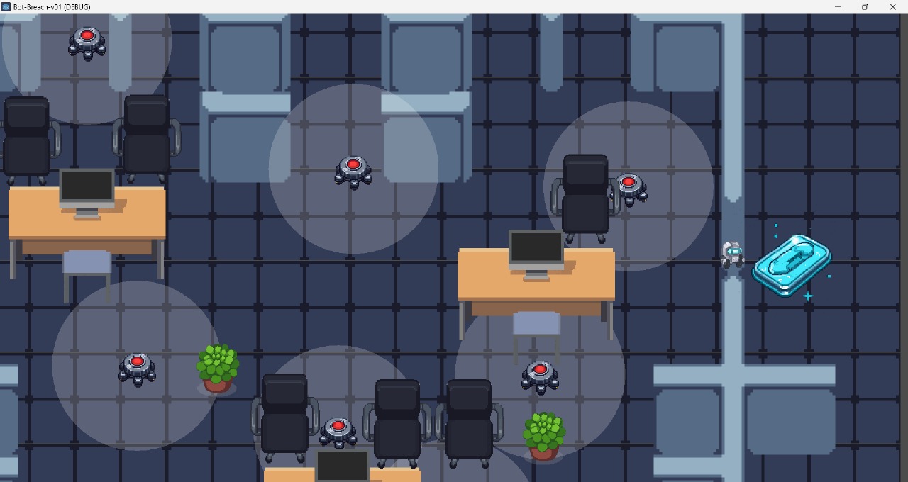 Bot Breach is a 2D zero-contact stealth game where you control a remote robot infiltrating a high-security office. Navigate through guarded areas, avoid detection, and locate the key to access critical data.